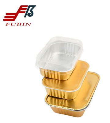 750ML Cosmetics Gold Takeout Aluminum Foil Trays With Plastic Lids